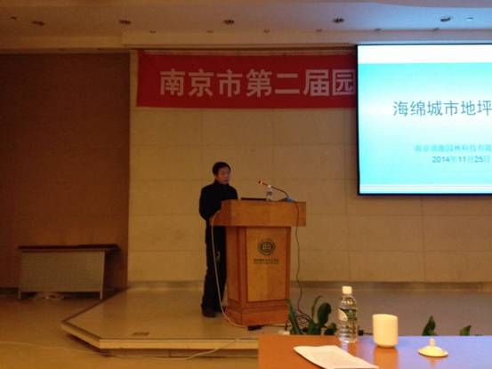 會(huì)議上,南京諧趣園林科技有限公司劉從容作了題為“海綿城市地坪建設(shè)”的專題報(bào)告,就海綿城市道路廣場(chǎng)的透水地坪建設(shè),南京彩色透水混凝土地坪、南京壓印藝術(shù)地坪、南京植草地坪、南京彩色瀝青的現(xiàn)狀和應(yīng)用等內(nèi)容同與會(huì)代表進(jìn)行了交流和分享,贏得了與會(huì)代表的歡迎。