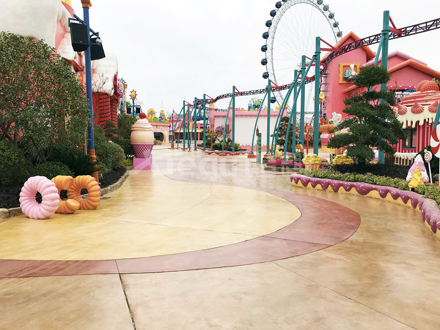 彩色混凝土洗砂地坪被廣泛應用于各類游樂園、海洋公園、主題公園、景觀地坪等地面鋪裝。